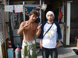 はいさーい!!あかねでーす♪♪今日は〜砂辺で体験ダイビングです!!9時から遊びに来てくれたのは〜お笑い芸人見習いの(笑)☆りょうくん☆よしくん☆です♪♪ダイビング初挑戦の2人!!でも、最初から全然余裕!!普通にかなり上手に自分で泳いで〜潜っていきます☆ただ、くんは耳抜きに少し苦戦。。でも、がんばりました!!水中で、サカナに餌付け!!本物のニモ☆かわぃかったねぇぇー!!写真にちゃんと写ってたかな??2人のやつも、ちゃんと仲良さそうに写ってたでしょ(笑)すんごく上手だったから☆次は、絶対に2人ともライセンスに挑戦してください!!また〜いつでも遊びに来てくださいねぇぇ〜!!まってるよぉぉーん♪♪次は小島よしおやってね!! |