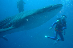 午後からはジンくん・タクヤくん、2匹のジンベイザメとダイビング(^∀^)他チームもほとんどいなかったから、広々スペースで牧野さんは写真を撮りまくり!!!大きな口を開けて近づいてきたところでサメ肌タッチ!ザラザラ、ツルツル♪お腹の部分はプニプニ☆気持ちイイ〜!!! |