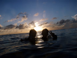 体験ダイビングに初挑戦は埼玉から遊びに来てくれた、アヤちゃんとカナちゃんでっす!!!初めはやっぱり緊張気味。でも魚がたくさん集まってきて、ニモを見る頃にはもうニッコニッコの笑顔でした♪時間的に太陽の光がとっても綺麗な時でした☆次回は洞窟に行ってみましょう!!!(^∀^)!!! |
