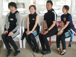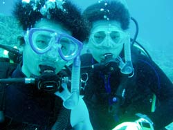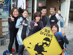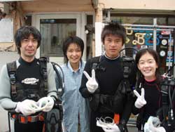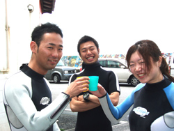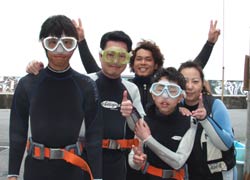 チーーームOW一本背負い!!を結成して三日目!見事に新しいダイバーがココに誕生しました!!メンバーは待つことが出来ないトオルさん!いつでも一本背負いができるユカリン!!初日はドキドキしながらスクーバ呼吸をしたり、マスクの水を抜いたりしましたね!二日目はほとんどスキルは問題がなかったのですが・・・。お勉強の時に苦戦!!していたのがトオルさんでしたね(笑)。それでも二人とも高得点で一発合格!最終日の今日は砂辺でスキルの最終調整をして二本目は洞窟を狙いに真栄田岬にいってきました!ん〜透明度も最高で二人の合格を祝ってるようです・・・。が・・。二人に実技最終テストが待っていました(笑)。トオルさんはマスククリア!ユカリンはレギュレータリカバリー!見事に二人とも合格しました!!おめでとぅぅーー!トオルさんは明日からAOWコース!楽しみにして潜ってくださいね!ユカリンは三日間よく頑張りました!これからたくさん潜っていい思い出をいっぱい作ってね!!またいつでも遊びにきてねーーーー! |