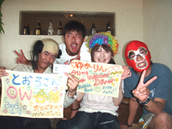 こんにちは〜〜!!今日は、青森からねぶた祭りのPR・・・じゃなくて、群馬から青の洞窟スノーケルをしに遊びに来てくれたのは、ノリの良い2人組ケイコさん、ノゾミさんです☆☆とある旅行会社から、飛行機に乗って到着した日はダイビングを出来ないと言われ、スノーケルに変えたらしいのですが実はダイビングできますよ!!二人ともその事に笑いながらも、少し旅行会社をうらんでましたね;笑 それでも、青の洞窟ではその青さに心を癒され、帰りにはたくさんの魚にエサをあげたりと沖縄の海を満喫できましたか?明日のジンベイザメもおもいっきり遊んできてくださいね♪♪♪ |