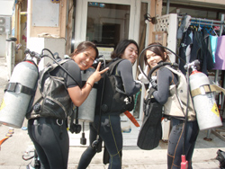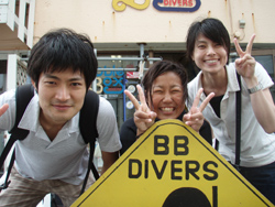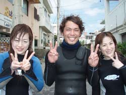 はいさーい!!あかねです☆今日は砂辺で体験ダイビングでーす♪♪渡辺さんがお友達を連れてきてくれました〜☆与田さん☆小川さん☆です!!2人と一緒に砂辺に体験ダイビングしに行ってきました!!2人とも、最初から上手!!慣れてきたら自分でスイスイ泳いでいましたね♪魚もたくさんよってきたねぇぇー☆そして、本物のニモ見れましたねぇぇー♪♪ちょっくら。。気の強いニモでしたが、かわぃかったですネ♪♪そして2本目も!!2本目は砂辺のお花畑を満喫してきました♪♪2本目は1本目と見違えるくらい上手になってました☆明日はケラマで体験ダイビングです♪明日も楽しみましょーね!! |