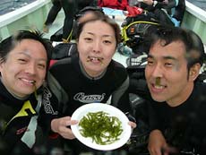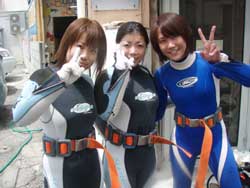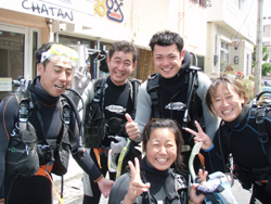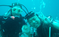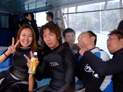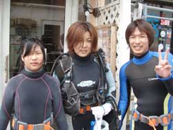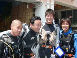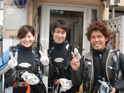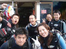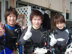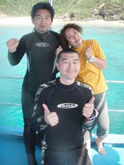 よっしゃーーーー!!わんたんでっす!!今日は体験ダイビングです!メンバーは東京からお越しの菅原さん!!名古屋からお越しのヒロノブさんとシホさんでーーーす!説明から水面練習のときはみんなドキドキしていまいたが・・・。潜ってしまえばなんのその!!三人はすごーくうまかったので一人でスイスイ!泳げる事ができました!あのニモにも会えたしね(笑)。イソギンチャクは予想外の触り心地だったでしょ?今度はライセンスに挑戦してダイバーの仲間入りしてくださいね!! |