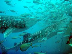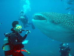 今日は午後からジンベイツアーに行ってきました☆BBに遊びに来てくれたのは、まーくんとまるくんの初ファンダイブのお二人です!!ジンベイに申し込んでは見たものの襲われないかちょっと心配な二人・・・(笑)大丈夫ですジンベイはとても穏和なので襲われる事はありません。エントリーすると網の中には大きな体をクネクネゆらしながらジンベイ君が2匹も泳いでいます。透明度も最高によくて餌付けシーンもしっかりみれました☆明日もまたボートダイブですね★☆楽しんでいきましょ〜!! |