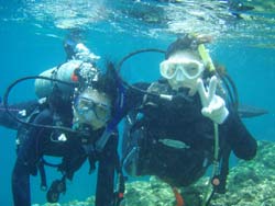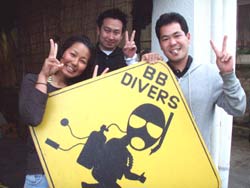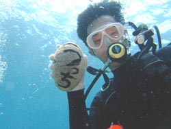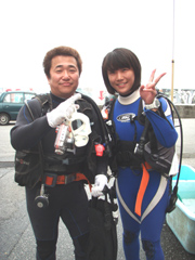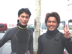 まーくん&まるくんのアドバンススクールです。実は今日が初めてのビーチダイビングのお2人タンクをしょって、やや、はぁーはぁーしながらエントリーポイントへ。 1ダイブ目コンパスを使い、バディとの見事なアイコンタクトも使い、四角形をつくり、ばっちり元の場所に帰ってきました。2本目は中性浮力、肺でのテクをあれこれ練習、今日の技をつかいながら、これからもどんどん男前なダイバーになってね。 みごとアドバンスダイバー合格おめでとう!!ナイスキャラのお2人と潜れてとっても楽しかったです。またいつでも遊びにきてくださいね。スノーケルで潜行したり、マスクなしエントリーはしないからさ(^^)。。それにしても、スノーケル技術が飛躍的にスキルアップしたのは、大発見でしたね。(^^) |