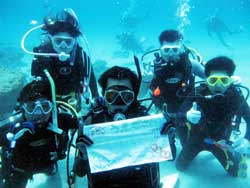 今日は『チームぷりんDチーム』のOWスクール最終日です。メンバーは、 ぷりんちゃん(柴田くん)&コーヒー野郎(たくみくん)&ブッチちゃん(田淵ちゃん)&マ〜にゃ(松島ちゃん)&カーナー(大藤ちゃん)の5人組み。ナイスキャラのゆかいな仲間達です。昨日学科はみーんな合格!ということで、今日は水中でのラストスキルチェックです!マスクのスキルもレギュのスキルもみんな上手にできました。そ・し・て。。みごとOWダイバー合格ぅううう〜!!おめでとーーーー!!3日間よくがんばりました。初回のダイビングと今日のラストダイブのを比べると自分自身でもすっごく成長したのがわかったんじゃない?今日は水中での合格祝いをしたり、餌付けをしたり、サンゴの畑の上を泳いで癒されたり、本物のニモやにせものニモもみました。そしてダイバーのD(??)をみんなでつくって写真撮影!最後は細い穴も通りぬけました。みんなと3日間いっぱい笑ってりょうことーっても楽しかったです。ありがとう!またファンダイブでもアドバンスででも、いつでも遊びにきてね。次に会える日を楽しみにしています。次の生徒にコンパスを説明する時、『ややこしや〜♪』というのをこらえられるか、りょうこ自信がありません。。。。 |