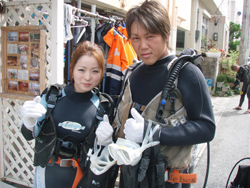 こんにちは〜!!今日は、お店の前の砂辺の海でタマミさん、ミノルさんと体験ダイビングでした☆☆最初は緊張気味だったお二人も、だんだん緊張もほぐれていき、魚にエサをあげたり、ニモを見に行ったりと水中世界を満喫していただけましたか??とっても上手だったお二人、ぜひまた沖縄に!お店に!!遊びに来て下さいね〜〜!!ライセンスでのお越しもおまちしていま〜〜す♪♪♪ |