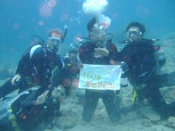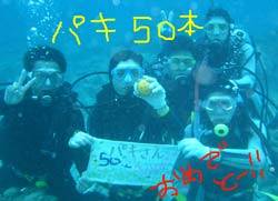 たりらりらーーーん♪♪あかねでーす☆今日は〜ケラマにファーンダイブしに行ってきましたよーーーーーーん!!メンバーは愉快な仲間がそろいましたよ☆☆パキさん☆ほだかくん☆やっさん☆なおし☆原さん☆です!!今日のポイントは「タマナーファーム」「トウマ」「野崎」です!!今日のケラマも楽しかったですよぉぉ〜!!デバスズメダイにキホシスズメダイの群れ!!ムラサキ色のキレイなサカナ☆ハナゴイ!!いろーんなサカナがたくさんだったね!!1本目のポイントではカメGET!!かなり、モデル気分なカメさんでした(笑)そして・・・今日のこの3DIVE目で・・・やっときましたよこの日が。。パキさんの・・・50DIVE記念でーーーーーーす!!おめでとーーー!水中で見事☆ドラゴンボールを発見!!これからも、いろーーんな海でたっくさん遊んで♪潜って♪いーーーっぱい楽しい思い出作っていってね!!100本もB.Bで一緒に祝うぞぉぉぉーーー!!今日は〜みなさんお疲れ様でした♪1日楽しかったですね☆また〜みなさん一緒に潜りましょうねぇぇー!! |