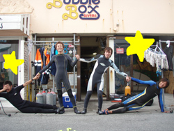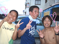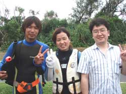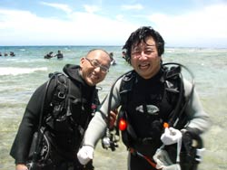 こんにちは〜〜!!今日は、午後から飛び込みでミキヒロさん、ユウジさんが体験ダイビングをしに遊びに来てくれました☆☆波乗りをするというお二人は、水面練習で呼吸も耳抜きも上手にこなし、水の中でも余裕でスイスイと泳ぎまわって魚にエサをあげたりニモを見たりと、遊びまわっていましたね♪♪♪初めての水中世界はどうでしたか??また、お店にも沖縄にも遊びに来て下さいね〜〜☆☆ |