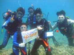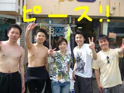 午後から遊びに来てくれたのは、またまたほっちのお友達のまっきー&よこちゃん。そして地元が近い熊本から遊びに来てくれたちゃんけん&ばばちん。そして飛び入り参加で来てくれたえりちゃんの5名で潜りました!!みんなで白黒のロクセンスズメダイに餌付けしたりナマコをぷにぷに触ってみたり・・・。砂辺のサンゴきれいだったしょ??みんなでワイワイ潜れて楽しかったですね★まっきーとよこちゃんはこの後ほっちチームと一緒に洞窟ダイビング!!もう二回目という事で水中も余裕の泳ぎっぷり!!青をしっかり目に焼き付けて海を満喫してきました☆★☆★また沖縄に来た時は遊びに来てくださ〜い!! |