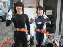 DEEP・スペシャルティーの☆片山さんです。がっつり2本ディープ−35mに行ってきました。安全停止の練習をしたりオクトパスでの移動をしたり、色の変化や水圧の変化を実際に目で見たり体験したり とっても勉強になりました。深い所ってなんとなく面白いですよね。でもでも そのリスクもしっかり勉強!!これからも 安全で楽しいダイビングを心がけてくださいよ。もう一日講習が残っています。次回6月には また 待っていますよ。楽しくもぐりましょうね。片山さん明日はボートダイブ楽しんできてね。 |