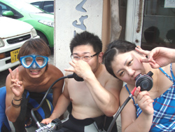 こんにちはぁ★今日は16日に水中でお誕生日をお祝いしたマーちゃんご夫婦の息子さんカッップル(^^)アツトくん&ミホちゃんがダイビングに初挑戦しに来てくれました!ちょっと泳ぎが苦手と言っていたミホちゃん・・・まみも今、海日記書く時に思い出しました(笑)それくらい上手♪上手♪アツトくんももちろん初めから余裕★耳抜きがんばってるミホちゃんを優しく見守っていましたね(^−^*)スイスイ中層を泳いだり、穴をくぐったりたっぷぅ〜り遊んできました!次回はお腹の薬じゃなくて、酔い止めかな?また遊びに来てね〜♪ |
