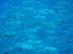 ふと目を開けてみると、そこは船の上・・・。景色を見てみると、なんとそこはああああああぐううににゃーーー!!そう粟国でした。参加してくれたのは水谷さんひーーとーーりぃーー。さぁ筆ん崎の離れ根!船長さんがギンガメが居ることを確認してダーーーーイブ!!うぉぉぉっぉ!!!2000匹はいるんじゃないでしょうか?ギンガメちゃん!でっかいロウニンアジも途中から合流!後ろを振り返るとそこにはナポレオンが・・。ん〜いやはやすごい海ですな。二本目はグルクの崎で大量のキンギョハナダイ、カスミ町長、ハナゴイ!三本目はスーパー地形ポイントブルーホール!くらい穴の中を進み!出たところはとんでもない青さでしたマイナスイオンが100%。三本とも濃いものでしたねぇー!帰るときはイルカが最後にいい演出をしてくれて帰って来ました!水谷サンまた機会があったら絶対いきましょうねー! |