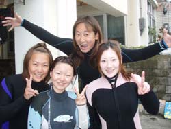はーい!ケラマに行ってきましたよー!!参加してくれたのはセイノさん!!ハマちゃん!アコちゃん!!レーコちゃん!今日のポイントは百合が浜!サンゴがとってもキレイな場所で有名でーす!二本目は知志!ご存知地形ポイントでクレパスを通って洞窟っぽい所へ・・・。三本目はカミグーへ!ここは砂地もキレイだし、生物もカメが狙えるポイントでーす!よーし渡部の目が血走りながらカメを探していましたとさ(笑)。願いが通じてタイマイが3匹もでましたね!すごーく近くで見れたしね!!今度は違うポイントでご一緒しましょーね! |