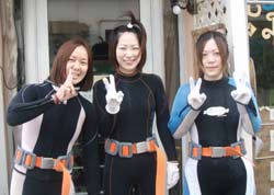 本日ラストに潜りに来てくれたのはお姉系レイコさん&天然系アサミさんでぇす♪今回二人は初めてのダイビング!!でもそんな風に見えないくらいテンション高々↑↑☆波に揺られながらも楽しく??呼吸の練習をしてスムーズにエントリー♪たくさんのお魚さんに囲まれながらエサをあげたり岩の周りを泳いでみたり♪一番のお気に入りはクマノミのお家?!見つけた瞬間ものすごい勢いで触りにいってましたね(^^;)笑 次はぜひ!洞窟ダイビングにも挑戦してみて下さいね♪ |