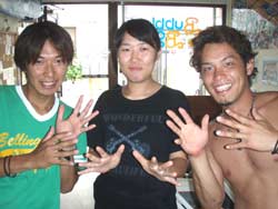 こんにちはぁぁ★今日はテンション↑↑☆賑やかな団体さまが遊びに来てくれましたぁ!富士山の麓で生まれ育った幼なじみとの事。同じ苗字がたくさんなのでお名前でご紹介です(^^)晴之さん・繁さん・征治さん・由彦さん・武洋さん・誠樹さん・大介さん・晴一さん・毅さん・匡智さん。ホントに仲良しさんで楽しい方々でした♪♪海の中でも賑やかです!中には酔ってしまった方やナマコやニモのお家に攻撃された方などなど、珍?事件がいっぱいのダイビングでした!!また沖縄に来た時にはぜひぜひ潜りに来て下さいね!!ブログにも大きく写真に載ってるのでぜひ見てくださ〜い♪ではでは♪ |