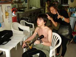今週はうちな〜の仕事仲間、「あらちゃん」こと新崎さんが与那原から体験ダイビングに来てくれましたっ! |