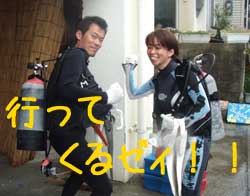 はいさぁい☆まみが一緒に潜ったのは体験ダイビングの光則さんです!!体験ダイビング3回目ということもあり、とっても余裕(^^)耳抜きにはちょい苦戦していましたが、こまめにすれば問題ナッシングゥ〜♪スイスイ泳ぎ回ったり、たっくさぁ〜んの魚達に餌付け・・・というより集られたり(笑)ガッツリ2ダイブ楽しんできました!!次はライセンス取って、みどりさんと並んじゃいますか!?まずはおこづかいを貯める所からですね(^^)またお2人とおしゃべりできる日を楽しみにお待ちしています★★ |