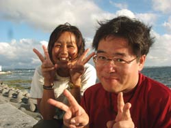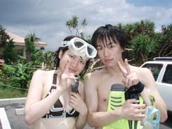 午後遊びに来てくれたのは京都からお越しの☆仲良しカップル☆ジュンちゃん&クミちゃんでぇす♪クミちゃんはテンション高々↑↑なんだけどかなり緊張...でもゆっく〜り呼吸の練習をして呼吸を落ち着かせてエントリー!すんなり潜っていたジュンちゃんは頑張っているクミちゃんを温かい目で見守っていましたね(>0<)/それからたくさん寄ってきた魚たちにごはんを...すごい勢いで二人を襲っていました♪笑 ジュンちゃん苦笑い...その後もゆっくり泳いでカラフルな魚を見たりして遊んだね♪水中でも二人の笑顔!素敵でしたよ☆今度は蒼の洞窟に挑戦しに来て下さいね(^0^) |
