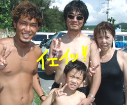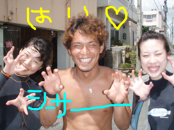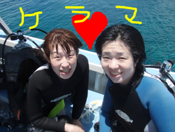 こんにちは〜!!今日は、昨日、一昨日からの友金さん親子とケラマで体験ダイビングとスノーケルをやってきました☆☆酔いやすくてボートが心配だったチズコさんも、酔い止めを飲んで行きのボートは寝ながら行くと、ケラマに着いても余裕で大丈夫でしたね!!とってもキレイな海のなか魚にエサをあげたり、またカメを見たりと、昨日までの2日間とは、違ったスケールの大きさがケラマにはありましたね!!さすがケラマ!!!そんなこんなであっと言う間の3日間でしたが、楽しんでもらえましたか??ぜひ、また沖縄に遊びに来て下さいね〜〜!! |