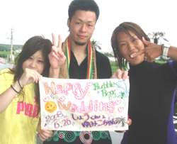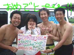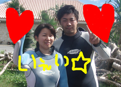 こんにちは〜〜!!今日は、真栄田岬で成兄といみ姉、クリクリとユリユリの4人で体験ダイビングでした☆成兄、いみ姉、ユリユリはライセンスを持っていましたが、久しぶりという事や、持っていないクリクリにあわせて4人仲良く一緒に潜りました♪♪水面練習のときに強く握り返してきた、その手にドキッとしてしまいそうでした☆(クリクリは男です。笑)それでも水中に入ってしまうと、スイスイと泳いでサカナにエサをあげたりして遊びました!!そして、2年前にうちで体験をしに遊びに来てくれて、その時はカップルでしたが今回結婚してまた遊びに来てくれた、成兄といみ姉。いつまでも、お幸せに☆☆プレゼントしたハンカチの、名前を間違えてしまいごめんなさい。笑・・・・・・・・ユリユリは、階段をのぼる時の前向きな姿勢に感動しました♪♪ぜひまた、4人みんなで沖縄にお店に遊びに来てくださいね〜〜♪♪♪クリクリはライセンスゲットでみんなでファンダイビングを楽しもうね。 |
