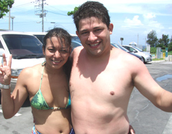 まいど〜ひろあきです!!今日も朝から太陽MAXで日差しがびりびり痛いです。。さあ〜そんな中体験ダイビングで遊びに来てくれたのは、千葉からミキてぃーとさとるのお二人です!!お店に来た瞬間からテンションがめちゃくちゃ高くてニコニコ笑顔の二人。初沖縄・初ダイビングを楽しんでもらいました★泳いで魚を見る度に指をさして追いかけて泳ぎまくっている二人(笑)感動のニモにも逢えて喜んでいました。また沖縄に来た時には是非!!遊びに来てくださいね☆ |