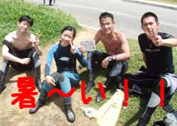 バブルはこれでいい。これでいいのだ。っはい!ワンタンでーす!今日はビーチでファンダイビングをしてきました!!メンバーは空飛ぶ鋭利な刃物の郵便屋さんカセさん!炎の料理人ヒカル!海のマーメイドヒロミさんと今日卒業ののんびーりダイバーかほりちゃん!!で潜ってきました!ん〜なんて濃いSUNABEのダイビングだったんでしょーか!遊びすぎてあんまり魚を見なかったですね(笑)でも2本目で最終テストレギリカ!を見事にクリア!合格!!おめでとうーーーー!!明日からAOWが始まるからかっこいいダイバーになってね!! |