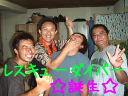 1!2!3!レンジャー!!っはーーーい!!昨日から海猿講習!いやレスキュー講習に入っていた中村さん事ナカさん!が今日で見事に鬼の講習を終えてレスキューダイバーになりました!おめでとうございまーーーっす!!初日から飛ばしてナカさんグッタリバッタリ・・・。水面で疲労している人やパニックを起こしている人、意識がない人などをくり返し・・くり返し・・。ん〜疲れきったことでしょう!二日目は復習プラス全体を通してのシナリオ!見事に昨日の練習がいかされ一発合格!!おめでとうございます!!海猿ナカさんの誕生です!!明日からはファンダイビングを楽しんでくださいね! |
