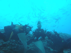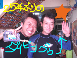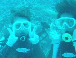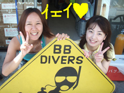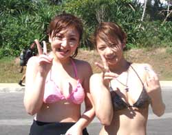 よいしょーーーー!!はいワンタンでーーーーす!!今日は真栄田岬でレッツラ体験ダイビング!!メンバーはエステティシャンのエミチ!!それから幼稚園からのくされ縁で幼なじみのカナちゃん!で一緒に潜ってきました!!エミチは今回はじめてダイビングをするので最初はドキドキしながら呼吸の練習をしました!でも慣れるとすごく上手に泳げていましたよ〜!だから一本目なのに真栄田の洞窟に行ってきました!すごいね〜!あの蒼さは最高でしょー!!明日はケラマで体験ダイビング!楽しもうねー! |