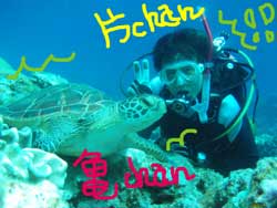 | こんにちはぁ★今日は最近お仕事と絡めて毎月遊びに来てくれている片ちゃんこと片山さんと贅沢マンツーでケラマへ行ってきました!!今日のポイントは灯台北・サントラ・野崎です!1本目はダイナミックな地形をゆったり楽しみ、2本目ではカメさん探し続け・・・毎日の行いを反省したら!!写真のよぉに間近でカメさんを観察してきました♪そしてガッツリ3本目はサンゴと魚の量がめぇ〜っっっちゃ沢山の中をのんびぃ〜り。ぼ〜っと癒されてきました!!お仕事の疲れは取れましたか?? 次は・・・今月!?ご予約お待ちしていまぁ〜す(^^) | |||||