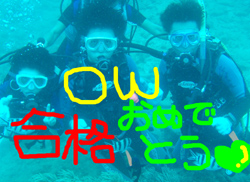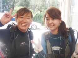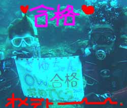 あかねで〜す♪♪今日は〜OW講習最終日!!一昨日から頑張っている☆さゆちゃん☆デス!!まず、1本目はいろんなスキルを頑張ってこなしていきました☆そして、2本目は緊急スイミングアセント&コンパスをがんばってやりました!!中性浮力の練習も昨日よりさらに☆どんどんびっくりするぐらい上手になっていきます!!上手にピタっと止まれていました!!そして、お昼から真栄田岬に移動してラストDIVE☆中性浮力を取りながら〜BC操作をしながら洞窟にレッツゴーです♪♪洞窟の青い光☆めちゃんこキレかったね!!そして最後に、水中で・・・ごーかーく祝いデス!!そして見事OWダイバーの誕生です!!おめでとーございます!!これからも、いろんな海でガンガン潜ってねぇぇー!!ほんとに3日間お疲れ様でした!!明日から、早速AOWに突入ー!!明日からはボート♪楽しんで下さい♪♪合格おめでとぉぉー!! |