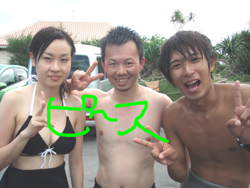 七月もあと少しで終わりです。。あとちょっとで八月に突入だぁーーーい!っはいワンタンでーす!今日は海況がバッチリの真栄田岬で体験ダイビング!潜ってくれたのはトシカズさん!ユキコさんです!2人で仲良く呼吸の練習をしながら、いざ海へ!魚がたくさんの所でエサあげタイム!ん〜なんて貪欲な魚達なんでしょう(笑)。その後はかわいいクマノミをみたり、空を飛んでるように泳いだり、最後は俺のワッカも上手くいってよかったぁー!また沖縄に来る時があったらお店に寄って下さいね!!待ってまーす! |