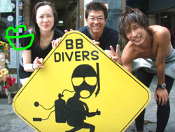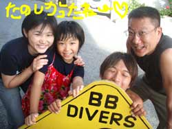 どうも初めまして。研修生のアッキーことあきひとです。今日はビーチファンダイビングのアシスタントで海に入りました。今日のメンバーは久しぶりのダイビングだっためちゃくちゃ元気なうぶちゃん。以前も遊びに来てくれたゆかさん&しょうちゃんの三名でした。皆様、お久しぶりのダイビングはどうでしたか??僕は初めてダイビングでウツボ(の幼魚でしたっけ??)を見る事ができてすごいテンションがアップしました!皆様もウツボ以外に色んな魚が見れて疲れもふきとばせましたか??もしまた機会があればまたbbに遊びに来てください! |