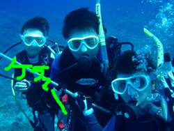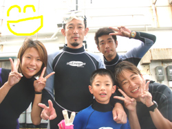 こんにちは〜!!今日は、神奈川からお越しのトモヤスさん、ユキさん、ラナちゃん、ユウトくんの4人と真栄田岬で体験ダイビングで〜す☆ラナちゃんとユウトくんは初めてのダイビングだったのですが、とっても上手で4人でサカナにエサをあげたり、クマノミを見にいったり、中層をプカプカ泳いだりと遊びまわりましたね!!空港からかけつけていただいたみなさん、お疲れのなかありがとうございました☆ぜひまた沖縄にもお店にも遊びに来て下さいね〜♪♪♪ |
