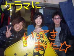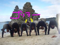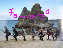 こんにちはぁ☆今日は昨日からの千葉ちゃんと約半年振りの阿部ちゃん、OWに引き続きAOW最終日の曽川さんと一緒にケラマへ行ってきましたぁ!!今日の始まりは・・・ホエールウォッチング★ほんっっっと間近に2頭のクジラが潮を吹き、尾びれを見せ、サービスいっぱいしてくれました♪♪そして、ケラマの海では・・・アリガーケーブルで電話の盗み聞き!?してみたり、トウマでは真っ白〜い砂地で癒され、3本目はカミグーでカメ探しのドリフトダイビング☆カメ!かめ!亀!!3匹発見!!4人で3匹♪・・・ってことは・・・普段の行いが悪いのは誰だぁぁ??(笑)でもでも、今日はお天気も海も生物も恵まれ楽しいぃぃぃ〜♪ケラマダイビングでした☆★☆そして、今日で曽川さんはAOWダイバーで〜す!!おめでとうございまぁ〜す★OWからの5日間お疲れ様でした^^曽川さんも、千葉ちゃんも阿部ちゃんも今日で終了。また沖縄に帰ってきてくださいね〜!!! |