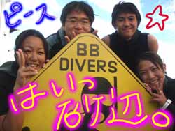 だぁーーーーーーーー!!明けまして明けちゃいましておめでとうございまーーす!!昨年も色々な方にご利用頂いて本年を迎える事ができました!今年は昨年以上に日々精進していきますので今年もBBダイバーズをよろしくお願いしまーす!っはい今日はみんなで仲良くロングドライブをして南の大度海岸にやってきました!!メンバーは山縣ママ・かずさちゃん・あべさん・ひろすぃ〜・ゆきちゃん・よしくん・よーこちゃん・シエロさん・ぱきさん・片ちゃん・さおりさん・ひでさん・うっちー・りんりんさんでーす!いやー新年からこんなゲストに囲まれてスタッフは幸せです!!2チームに別れてレッツGO!!ん〜干潮だったので歩くのが・・す、すごかったですね(笑)でも海の中は透明度も良くさいこうでした!!穴をくぐりながら、青い光をみたり、地形の写真を撮って見たり、生物を観察してみたり、、でもやっぱり人文字で2009を作ってみたりやっぱりみんなで潜ると最高に楽しい!!!かなり寒かったのもあり、1ダイブで終わるひともいましたが(笑)2ダイブ目ももちろん行く人もいたのでがっつり潜ってきましたぁー!今日は潜り初めがお昼過ぎだったので2本目を終わると・・・・あらら、もう夕暮れのお時間。。そして車で帰る途中に忘れ物あり!!・・・。今年もこうやっていろんな楽しいことがおきながら時が経っていくんでショー!こんなBBダイバーズですが・・ほんとに今年も宜しくお願いしまーす!! |