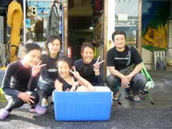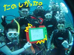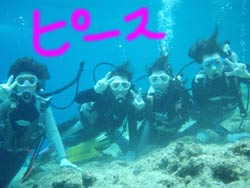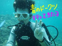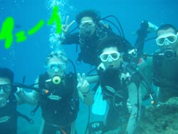 本日、11:00〜体験ダイビングをしに来てくれたのは学生時代のお友達同士サエちゃん・サトコちゃん・ヨウコちゃん・リエちゃんの元気ッ子4人組みです!!耳抜きが心配な子もいましたが、ゆっくりゆっくり潜って、最後はみぃ〜んな目標の?☆マーメイド☆になりました(^▽^)v洞窟の蒼の光を浴び、みんなで写真を撮り、1人旅では暴走し(笑)とぉ〜っても疲れ果ててたけど、楽しい思い出になってるといいな★また遊びに来てくださいね〜!! |