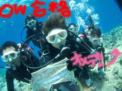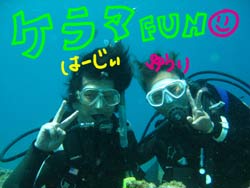 はーい!!わんたーーんでーす!今日もまたいいお天気!いや〜今日はケラマにOW講習の最終日でいってきましたー!そんなラッキーダイバーは〜りえちゃーんです!!なんと〜一発目からカメがみれました!!よかったねー(笑)二本目は完全に魚を無視してクルクルして遊んだり、鼻に棒を突っ込んだり、、いやーダイビングってやっぱり楽しいよねー(笑)って遊びはココまで!!最後にはちゃんと実技の最終試験レギクリアをやりました!見事にできて・・・合格おめでとーー!!間が開かないようにまた来てねー!!待ってるよー!! |