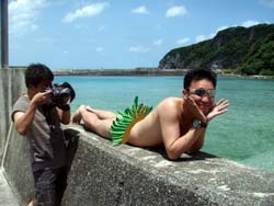 おお〜楽しそうな顔が映っていますね^−^今日はいつも遊びに来ているBBダイバーのちあきさん・ギブンさん・おまつさんと・・・・辺戸岬へ行ってきましたよ〜!!!!実は沈船エモンズを狙っていたのですが、強い北東の風で朝船がでないとの事だったので急遽沖縄本島の一番北!北谷から車で2時間30分くらい北上して港へ到着!!船がちょうど帰ってきていたので「おっ、なかなかいいタイミング♪」っと思っていたら乗り合いの都合でさらに港で2時間くらい待つはめに・・・。あまりにも暇だったのでギブンさんのオールヌードSHOW〜〜★☆でわいわい騒いでいました(笑)大自然をバックにあまりにも普通の全裸の姿には尊敬しました・・・(笑)公共の場にしてはあまりにもインパクトが強いので一番ソフトなやつを掲載します。そしてゴハンを食べていよいよ出港!!!まずは二神岩でエントリー!!ドリフトでしたがまったく流れなし!!!でも今日はウメイロやグルクン、そして得体の知れない魚の群れが数百匹グルグル僕達の周りを回っていて超キレイでした。1・5メートル級のネムリブカも岩の下で休んでいました。。そして二本目は港を出てすぐの名も無きポイント・・・。透明度はイマイチでしたが深場にはスミレナガハナダイや本島ではあまり見れないスジハナダイやたっくさんのウミウシが観察できました。ちょっとした穴には大きなイセエビもいましたよ〜☆帰りは船長さんから海ぶどうのお土産をもらいコンビニでビールを買って、夕日をバックにサザンのBGMでのメンズトークは楽しかったな〜。。。次回は是非エモンズ!!いきましょうね!!! |