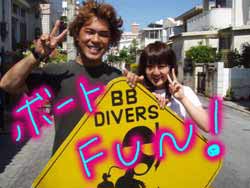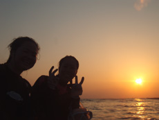 お昼から遊びに来てくれたのは、ダイビング初めてのタケシ君と咲ちゃんでっす☆元気で明るいお2人はそのままそのノリで海へ!!風の影響でゆらゆら揺れている水面での練習ではふざけたわんたんさんのアドバイスに水をかぶりながらも笑っちゃいましたね(笑)水中でも2人ともニコニコ!いっぱいのお魚に囲まれたり、クマノミと写真を撮ったりしてきました♪とっても上手だったので、YOUたちまたダイビングしちゃいなよ!!(笑) |