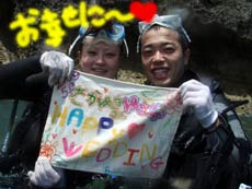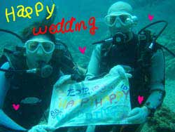 こんにちはーーー☆今日は砂辺で体験ダイビングーー!!遊びに来てくれたのは熊本県から新婚さんでラブラブなみやちゃん&としくーーん♪2人共初めてという事でみやちゃんはとくにめちゃくちゃ緊張していましたが水中に入るとたくさんの魚に囲まれながら上手に泳いでましたねー!!魚に餌ずけをしたりニモに会いに行ったりもしましたーー!そして最後は2人の結婚を水中でお祝いしちゃいましたーー★おめでとー!!また2人で遊びに来て下さいねー!! |