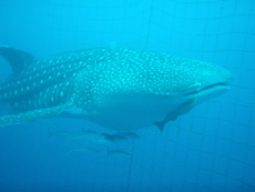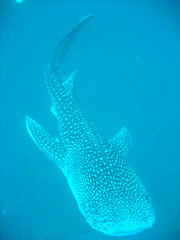 こんにちわ♪しげちゃんです!!今日のジンベイFUNは★川ちゃん★2人でジンベイ君たちと遊びに行ってきました☆ 漁港から出発して走る事、・数分・・・早速到着 準備して覚えたての「バックロールエントリー」で水中に入ると大きな魚影が・・・いました、いました「ジンベエザメ」 川ちゃんしばらく「ガン見」してたね☆ 網の中に入ると3匹のジンベエがグルグル泳いでましたね。迫力満点!! 若干下のほうには8mのジンベエが!!かなりの大きさだったね☆ 尾びれだけで人の身長くらいあったかも(笑) 餌付けが始まるとめっちゃ大きな口を開けて泳いでたねーー! できることならジンベエにまたがって泳ぎたかったね(笑) この後のビーチFUNも楽しもうねー☆ |