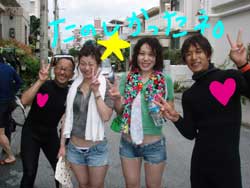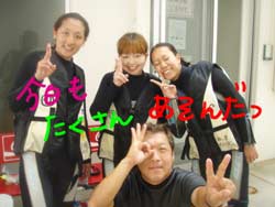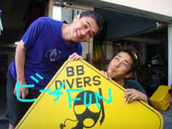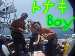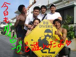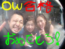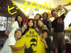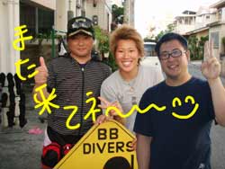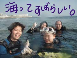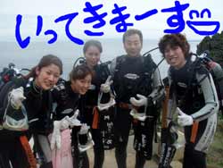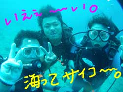 I GO TOTHE SEA!!っはーいワケあって英語で始まりました〜ワンタンの海日記でーす!今日は砂辺でOW講習の最終日を担当しました〜!メンバーは今アメリカの大学で勉強中の若干二十歳のヒロキくーんです!!二日間のジュン先生が良かったんでしょーな(笑)!!海の中はすばらしい上手さでしたよーひろきくん!!ちょっとSUNABEが荒れていましたが・・なんなく男の海をクリア!!そして〜その調子で最終実技試験!!レギュレーターリカバリーを見事にクリアで・・・合格ーーーー!!!!おめでとー!!合格した後の昼間からの酒は・・・格別だね・・(笑)今度アメリカから帰ってきたら沖縄にきてお店にも顔だしてみてねー!スタッフ一同お待ちしてまーす! |
