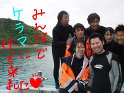 ボートに揺られてラッラッラー♪今日はケラマ諸島にファンダイビングに行ってきましたー!!メンバーはうっちーさん!あゆむちゃん!ミズタニさーん!イズルさーんの四人で行ってきました!!まずはカミグーからカメ狙いで結果は二匹!一匹はかなりよれましたねー!お次はまったりトウマで生物ウオッチング!ジョー、ガーデン、ハダカハオコゼにでっかーいウミウシ。。いやかなりでっかーいウミウシ。。三本目はサメを狙ってネムリブカをゲット!!四匹もいましたね!そして・・・メインはイズルさんの50本お祝い!みんなでお祝い楽しいですね!!これからも100本目指して頑張って下さいねー!!おめでとうございまーす!! |