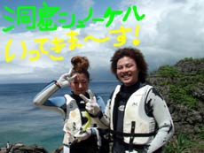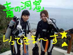 はいさ〜い!ひろあきです。今日は午後から洞窟ダイビングを担当しました★遊びに来てくれたのは一泊二日の沖縄旅行中のサヤカちゃんとリエちゃんのお2人です。南よりの風が吹き今日の真栄田岬も透明度抜群で穏やかでした。綺麗な魚を見ながら洞窟へ到着!!人も少なく青を堪能してきました。マイナスイオンたっぷり吸収できたね★餌付けには迫力のツバメウオが寄ってきて二人とも大喜びでした。今度はライセンスゲットで遊びに来てね!!!待ってるよ〜〜★ |