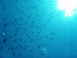 はーーい!海!魚!深海魚っと来たら・・ワンタンでございまーす!今日は〜海況も最高ーー!だったので粟国に行って参りましたー!メンバーはリベンジに燃えるイトウさーん!爆弾隊長ゆみさーん!プラス浮力の女王しょーこちゃん!会社にケンカ上等のヒノさんで行ってきましたー!一本目は〜・・・ちょ、調整もかねて残波岬でドリフトダイビング!相変わらず迫力満点の地形でしたねー!!いろんなクレパス、穴をくぐってきました!二本目は〜おぉぉ!!やっと来ました筆ん崎!エントリーしてギンガメを探している間にもイソマグロがウヨウヨ・・。ん〜すごいポイントだ!そして見つけましたギンガメトルネード!!3000匹のパレードが・・・イヤイヤあれはお祭りですな!ギンガメ祭り・・。 |
