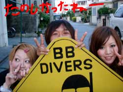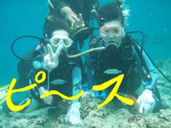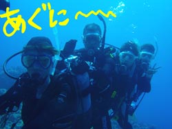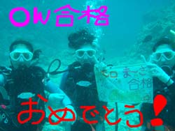 こんにちはーー!!今日はファンダイビングをしに来てくれたあやちゃん&OWラストの2人でーす!ってことで今日はなんとっ!!新たに2人のダイバーの誕生でーす♪めでたく今日ダイバーになったのはモロちゃん&マーサ★おめでとーーー!!まず今日一本目は砂辺!ニモを見たりサンゴのお花畑の上をフワフワ泳ぎ回ったり講習とは違ってたくさん泳ぎ回ったり魚を見たり楽しかったですねー!!あやちゃんも大好きな下ネタに大興奮でした!笑。そしてそして、講習のラストダイブは蒼の洞窟のある真栄田岬に行ってきましたーー!!暗闇が苦手なやく2名は真っ暗な洞窟にビビリながら、なすびはツバメウオの勢いにビビリながらも洞窟の奥まで行ってきました!洞窟を出る時はキレイな青に向かって泳いで気持ちよかったですね〜☆二本目の最後には水中でモロちゃん&マーサちゃんのOW合格のお祝いをしてきましたー!!おめでとー!!感覚忘れないうちにまた遊びにきてくださーい!あやちゃんも暇な時はいつでも潜りにきてねー!!また一緒に潜りましょー! |