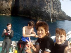 はーい!!今日は砂辺で体験ダイビング〜!参加してくれたのは〜フミコさーん!マモルさーん!ミヨさーん!チエミさーんでーす!最初からみんな緊張していたみたいで・・(笑)説明も食い入るように聞いていましたね!!でもでもそのおかげで水面の練習もそこそこに海の中に入ることができましたね!!どうですか?海は蒼いでしょー!それに魚がたっくさん!でも〜メインは〜ニモですね!!可愛かったですよねー!イソギンチャクの触り心地にも堪能??びっくり??していましたね(笑)今度は〜洞窟の体験ダイビングにも挑戦してみてくださいね!!まってまーす! |