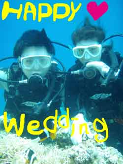 真栄田岬のスペシャルセットコースで遊びに来てくれたのは新婚さん☆よしくん&みっき〜です!!2人とも初めてのダイビング♪みっき〜はめちゃめちゃ緊張してかなり焦ってしまったけど徐々に呼吸にも慣れてきたみたいでゆっくり泳ぐことが出来ましたね(0^^0) よしくんは意外に冷静でよくコロコロ転がっていたけどたっぷり水中世界に浸っていました(^0^) たくさんのお魚さんに囲まれながらの餌付けやクマノミのお家「イソギンチャク」の感触はどうでしたか??ぺたぺたくっついてとっても不思議だったでしょ??1ダイブ終った後はお楽しみの蒼の洞窟スノーケル☆水面にいる安心感からかみっき〜喋る喋る♪洞窟内にもたくさんの夜行性のお魚さんがいてすごい迫力だったでしょ??そして水面が蒼くキラキラ輝く場所へ!!今日は太陽が顔を出してくれていたので宝石みたいにとっても綺麗に輝いていたでしょ(^^) ちょっぴり??苦労したダイビングだったけどまた沖縄のキラキラ輝く海に遊びに来てね♪2人の素敵な笑顔が見れる日を楽しみにお待ちしてま〜す!! |