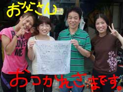 今日は沖縄在住のたけちゃんがツトムパパを連れて遊びに来てくれましたぁ♪パパは初めてだったのでめちゃめちゃ手に力が入っていました!!一瞬慌ててしまったけど魚が目に入るとさっきの緊張は何処へ?!って言うくらいニコニコ笑顔でしたね(0^^0) ゆっくり泳いでニモのお友達の「クマノミ」に会いに♪ペタペタくっつくお家の感触はとっても不思議だったでしょ??たっぷり泳いでラストはたけちゃんファミリーよりサプライズプレゼント☆潜る前にお願いされたゆうりはたけちゃんにハンカチを岩に隠してきて!とお願い。その間パパはヒトデと写真(^^)v そしてたけちゃんと一緒に岩を覗きに・・・ パパの顔はこんな感じ(?。?)笑 でも開いてみるとそこには3人のお子さんからと4人のお孫さんからのメッセージが。感激の余りマスククリアが必要?!笑 私も涙が出そうになるくらい感動しました(><) とっても素敵な家族愛☆ツトムパパ、長い間本当にお疲れ様でした!!また家族みんなで沖縄にお店に遊びに来て下さいね!!楽しみにお待ちしてま〜す!! |